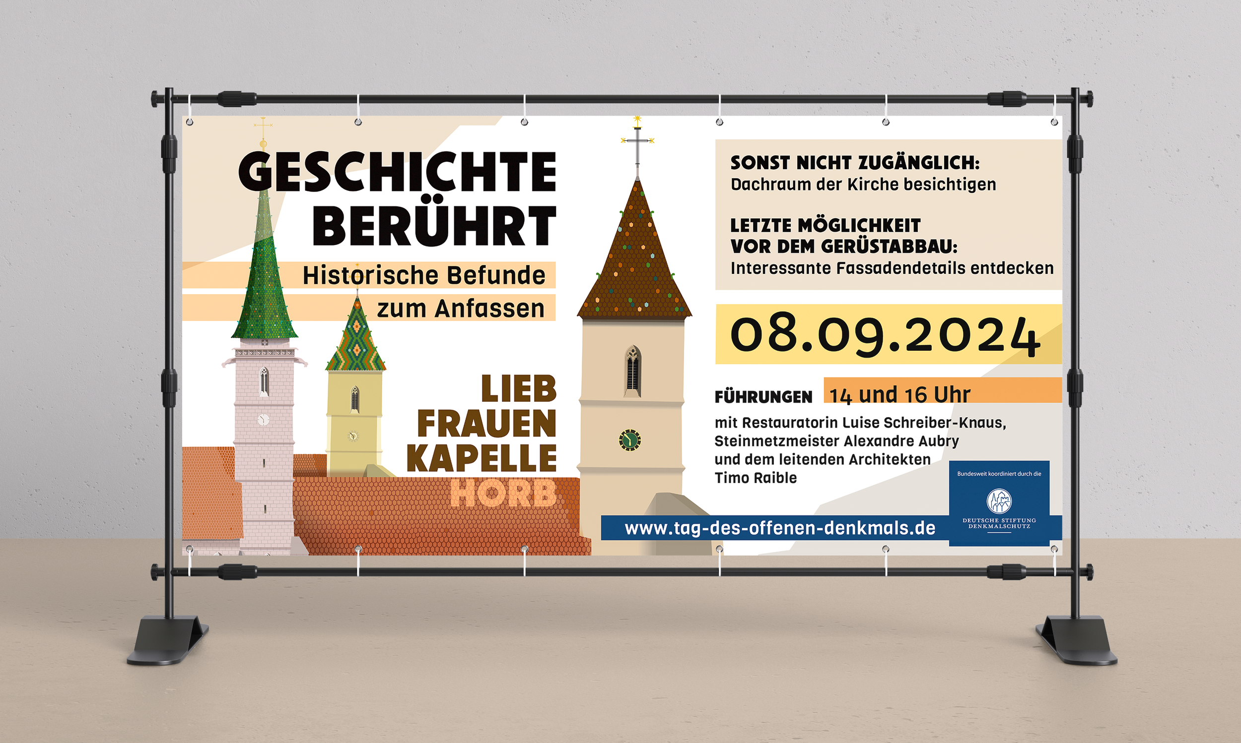 Gestaltung Bauzaunbanner für den Tag des offenen Denkmals in der Liebfrauenkapelle HORB